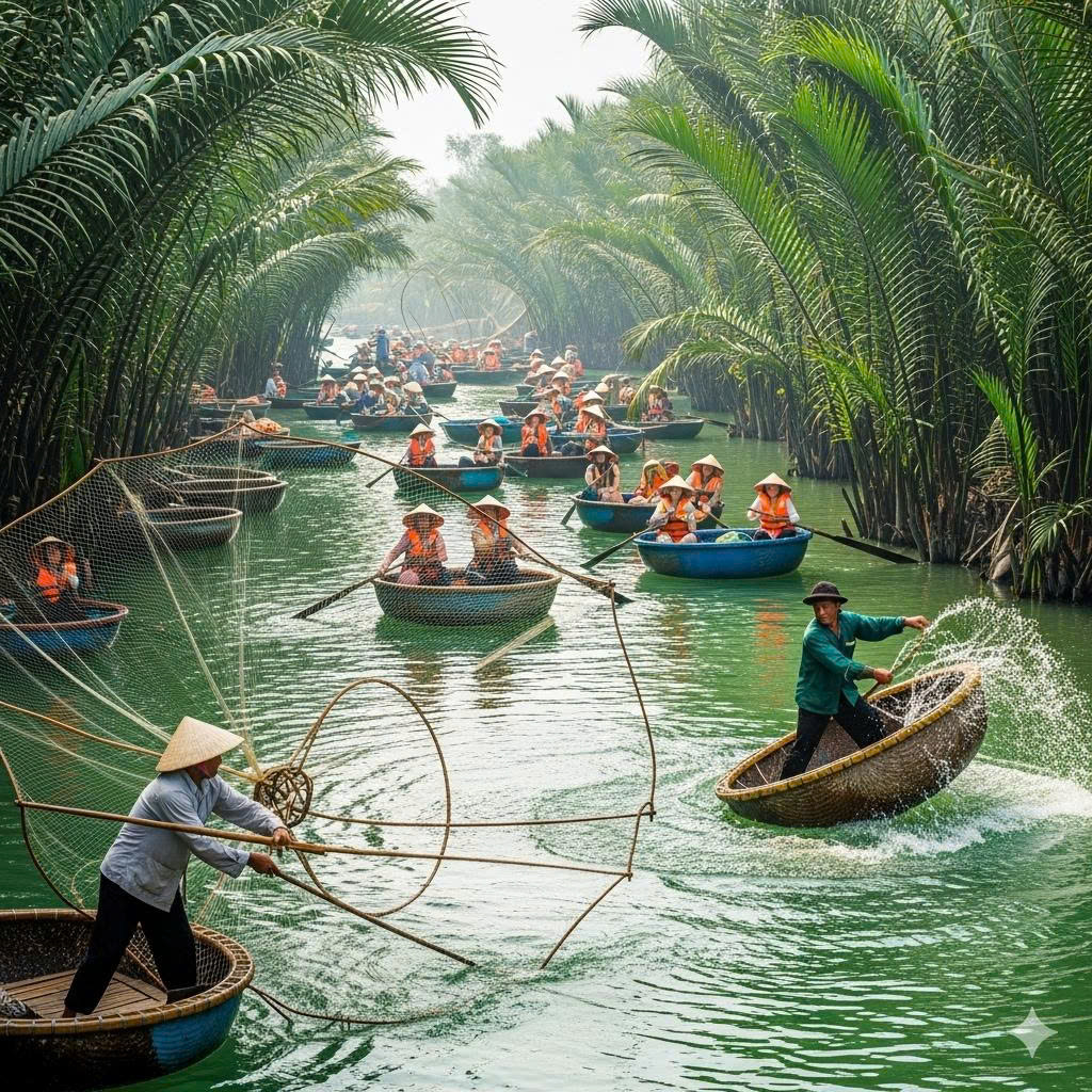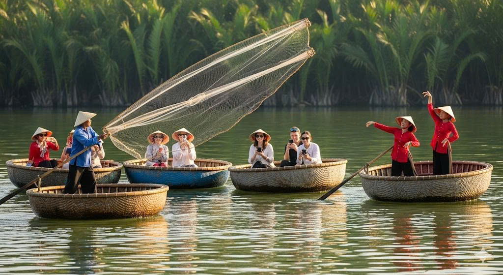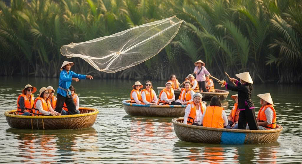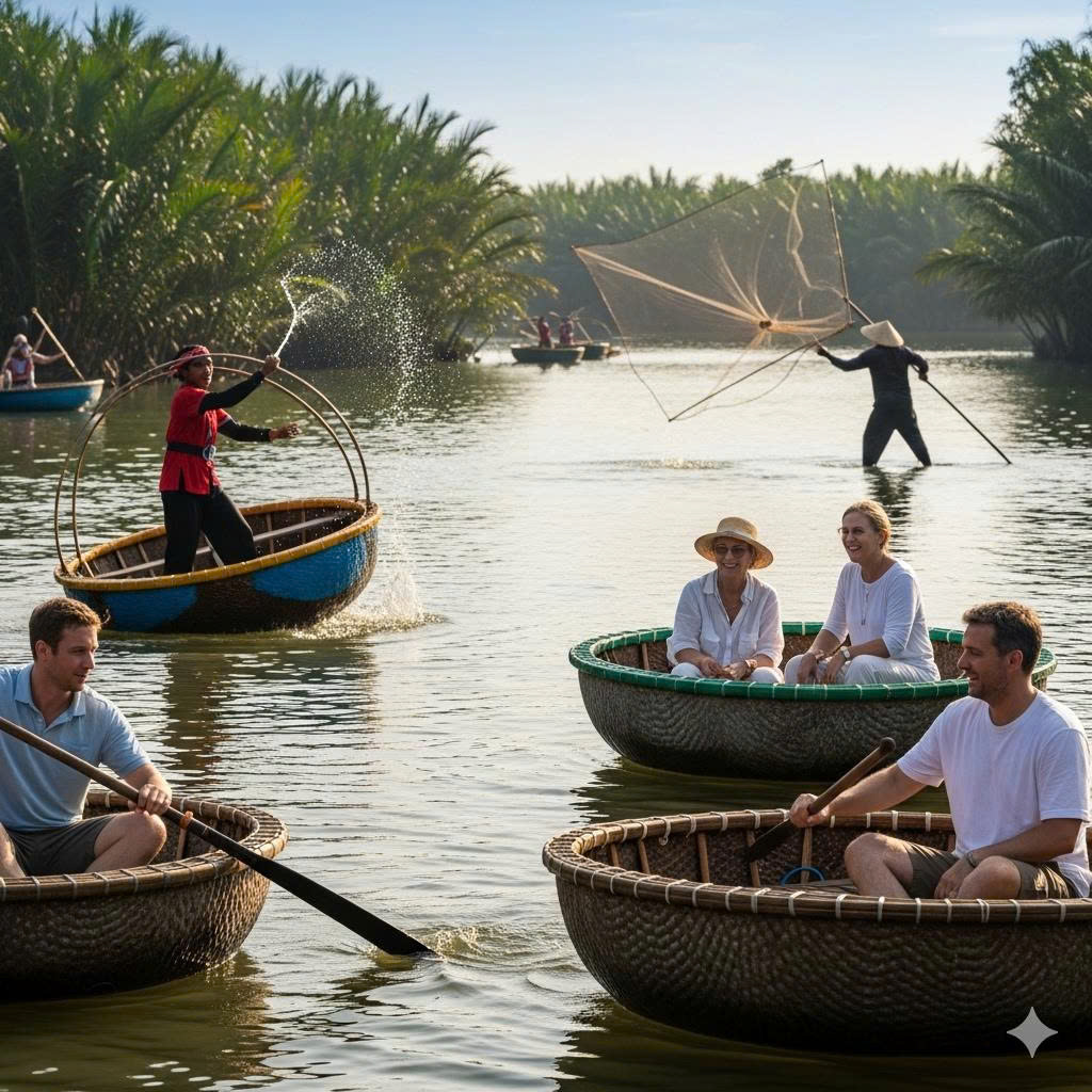 “ Experience the mesmerizing beauty of **Traditional Net Casting** performances during your basket boat journey ...