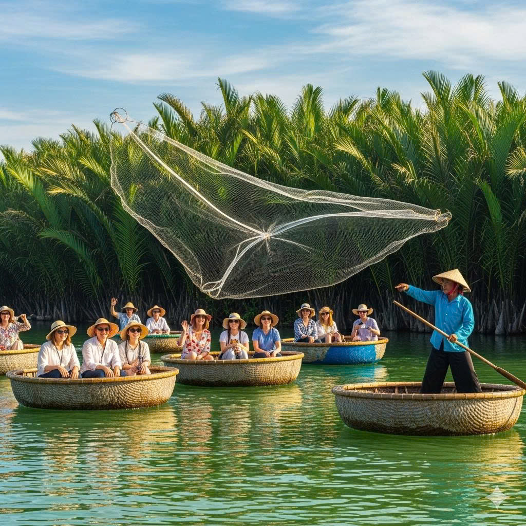Basket Boat Rowing Experience at Bay Mau Coconut Forest offers visitors an authentic glimpse into ...