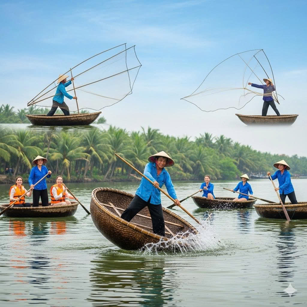 Experience the mesmerizing **Artistic Basket Boat Spinning** performances by skilled fishermen in Hoi An, Quang ...